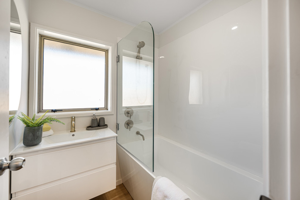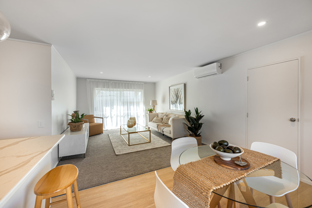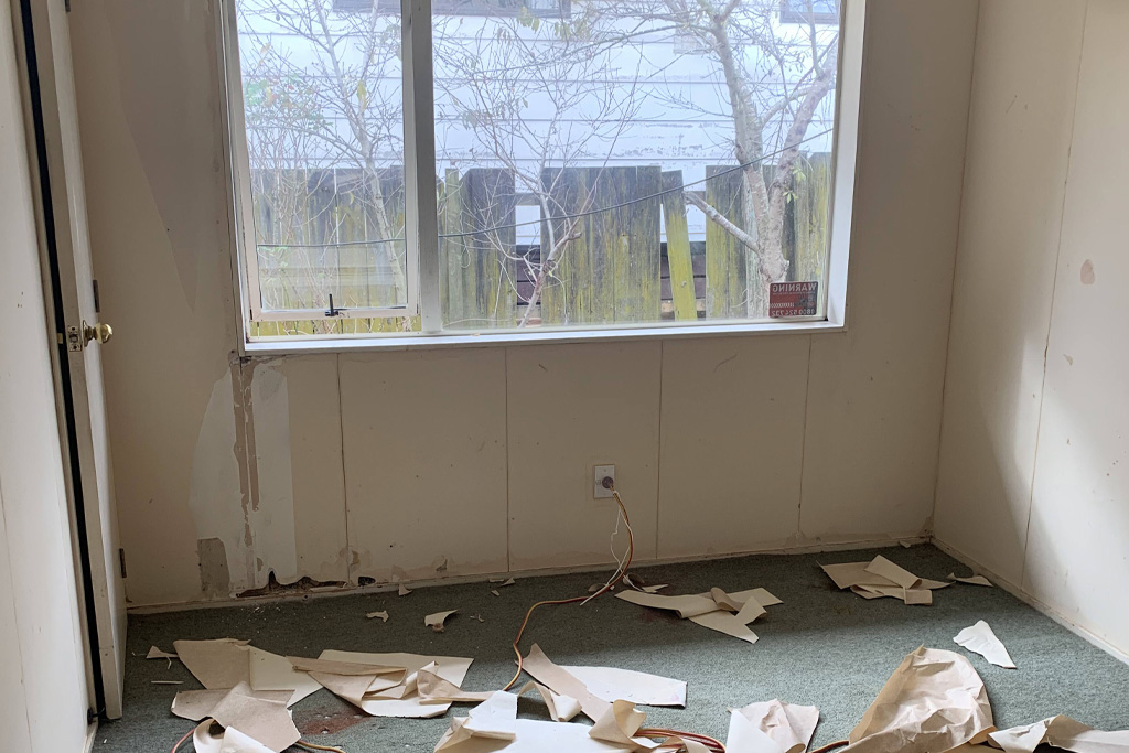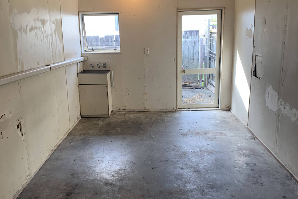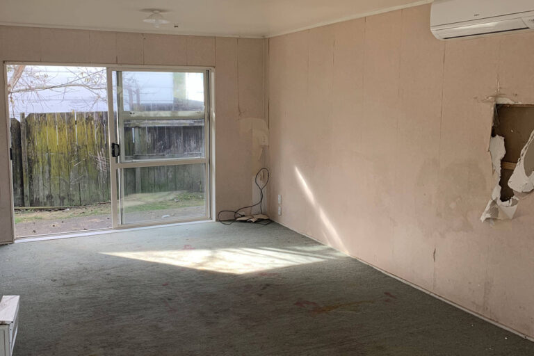 When we walked in the doors of this south Auckland property we knew instantly we had our work cut out for us. The house was completely run down with holes in the walls, worn-out carpets, and a kitchen that was literally falling apart. We extended the kitchen adding a big counter with bench seating, renovated the garage to make it a usable space, and updated all the electrical. The addition of new flooring, interior paint, full fencing around the property, and new lighting transformed this house into the perfect home for a first-time buyer. >